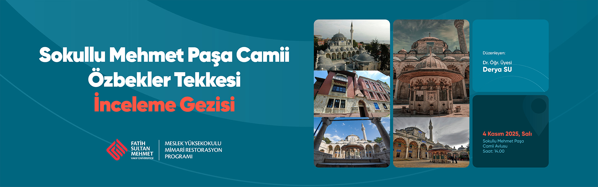 Güzel Sanatlar Meslek Yüksekokulu Mimari Restorasyon Programı tarafından düzenlenen “Süleymaniye ve Şehzade Külliyeleri” teknik gezisi 2 Ekim 2023 tarihinde Dr. Öğr. Üyesi Derya SU koordinatörlüğünde gerçekleştirildi.