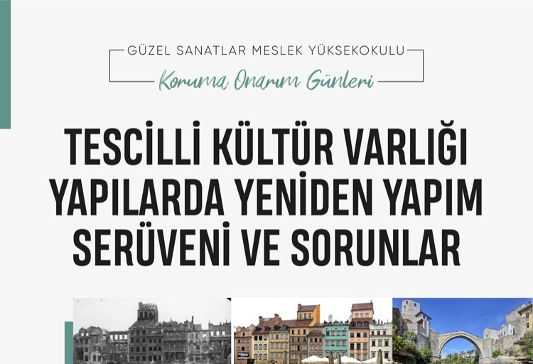 Güzel Sanatlar Meslek Yükseokulu bünyesinde başlayan "Koruma Onarım Günleri" seminer serisinin ilki Dr. Öğr. Üyesi Zeynep Emel EKİM moderatörlüğünde İnşaat Yüksek Mühendisi Özgür YAĞCI tarafından 24.02.2021 saat:16:00'da gerçekleştirildi. Seminerde Restorasyon,Renovasyon ve Rekonstrüksiyon kavramlarının 19.YY'dan günümüze kadar Avrupa'da ve ülkemizdeki tarihsel gelişimi, yasal süreçleri, araştırma yöntemleri ve sorunları anlatıldı.